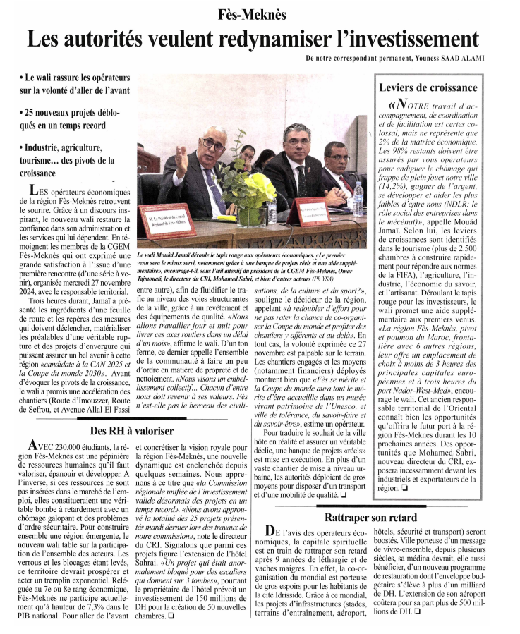 Rencontre stratégique entre la CGEM et le Nouveau Wali de la Région Fès-Meknès ...